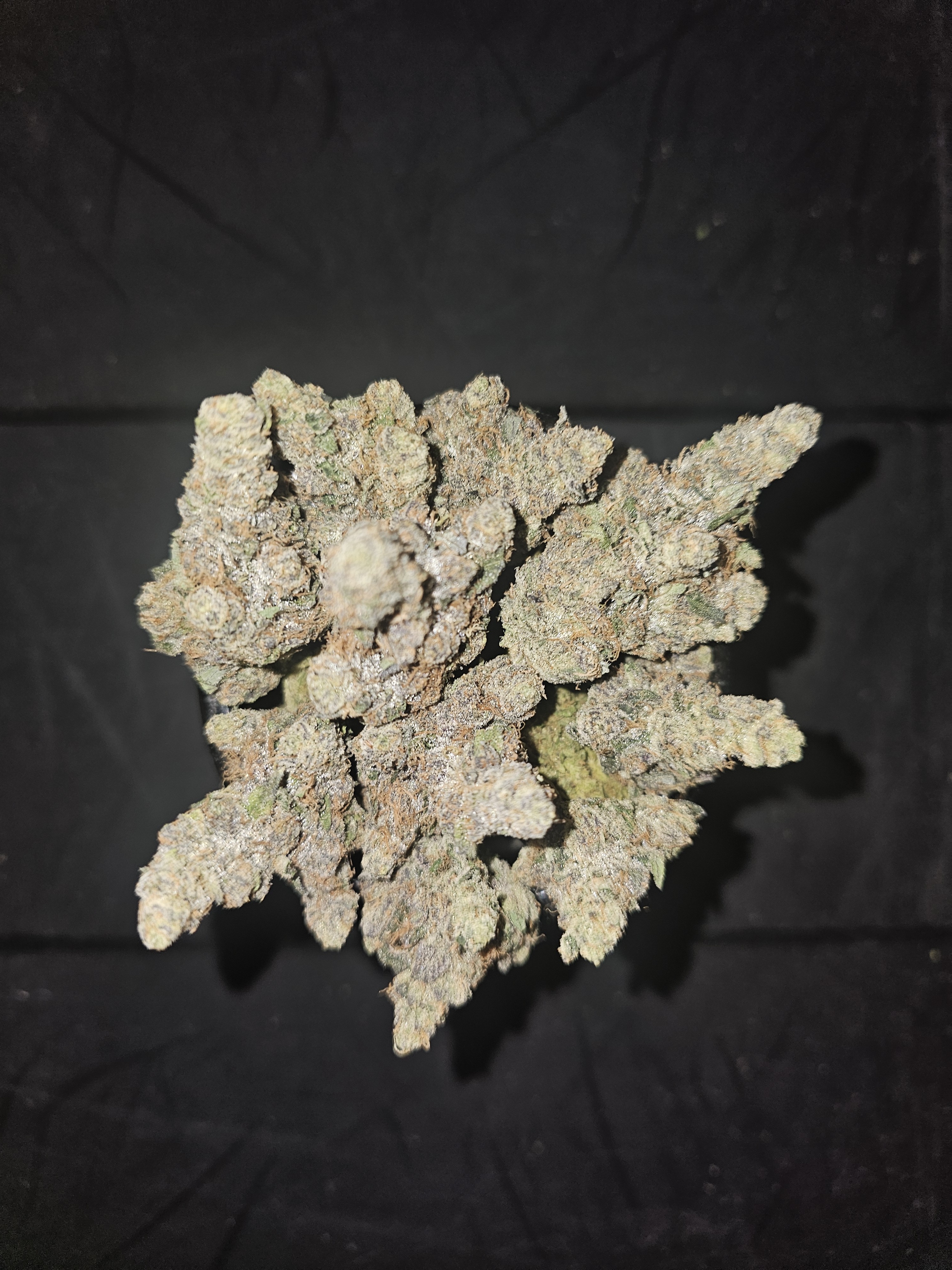 Xeno is a slightly indica dominant hybrid strain (60% indica/40% sativa) created through crossing the delicious Kush Mints X Zkittlez strains. If you're after a super soothing high to help you end out a long and stressful day, Xeno is the perfect bud for you. This lovely lady packs full-bodied effects that will have you feeling calm and at ease in no time at all. You'll feel the effects hit your brain first, filling it with an expansive sense of euphoria that helps settle your mind and negate the effects of any racing thoughts or bad moods. This sense of calm will soon work its way throughout your entire body, helping you to stretch out on the couch and really relax, free of any physical aches or pains whatsoever. With these effects and its high 25-32% average THC level, Xeno is often chosen to treat those suffering from conditions such as chronic stress or anxiety, depression, chronic pain and cramps or muscle spasms. This bud has a sour citrusy flavor with a punch of menthol and tangy grapefruit upon exhale. The aroma is very similar, with a sour citursy grapefruit overtone accented by sharp menthol, spicy herbs and fresh earthiness. Xeno buds have spade-shaped olive green nugs with thin orange hairs and a coating of super frosty, tiny white crystal trichomes dripping with sweet sticky resin.