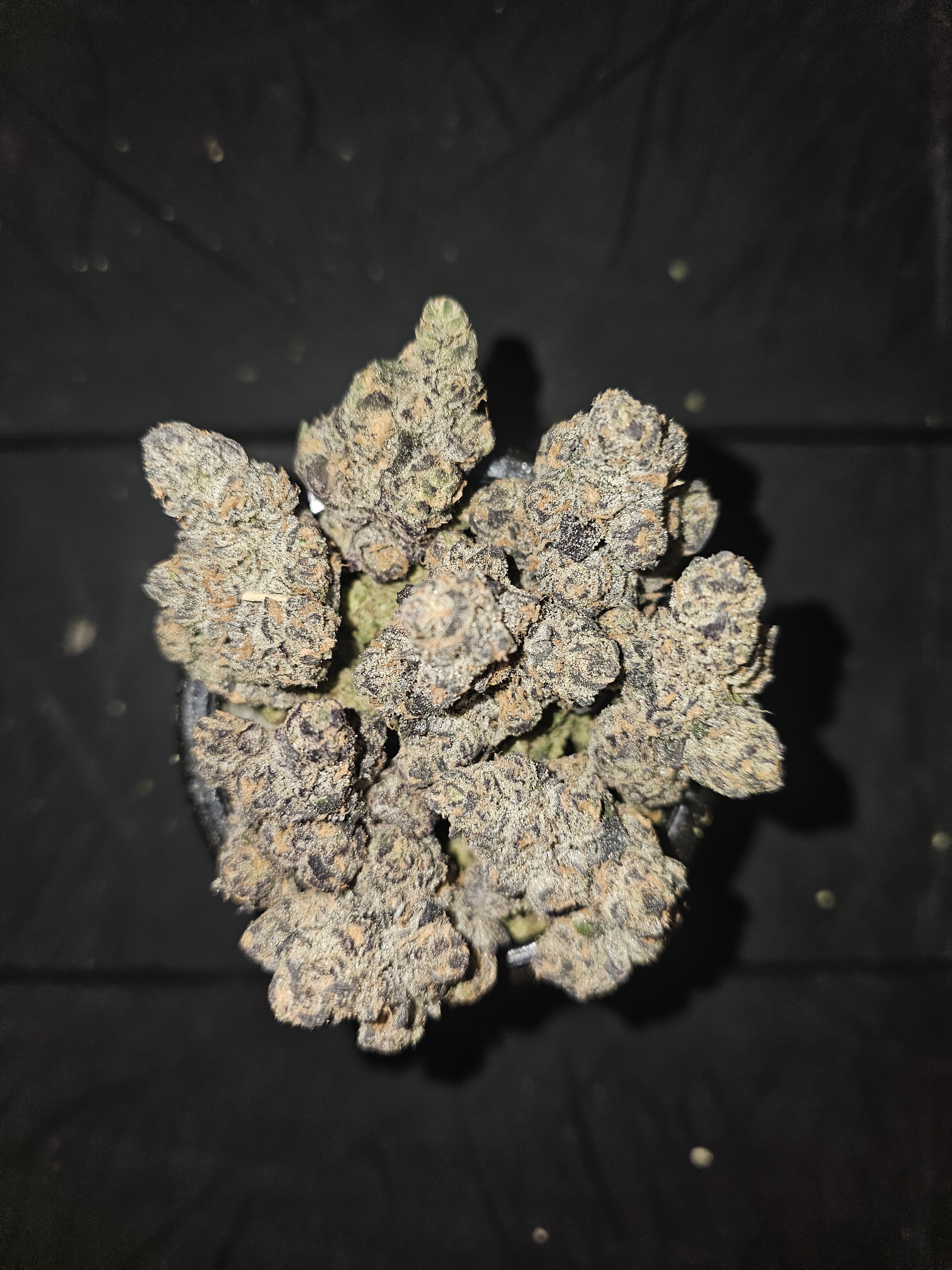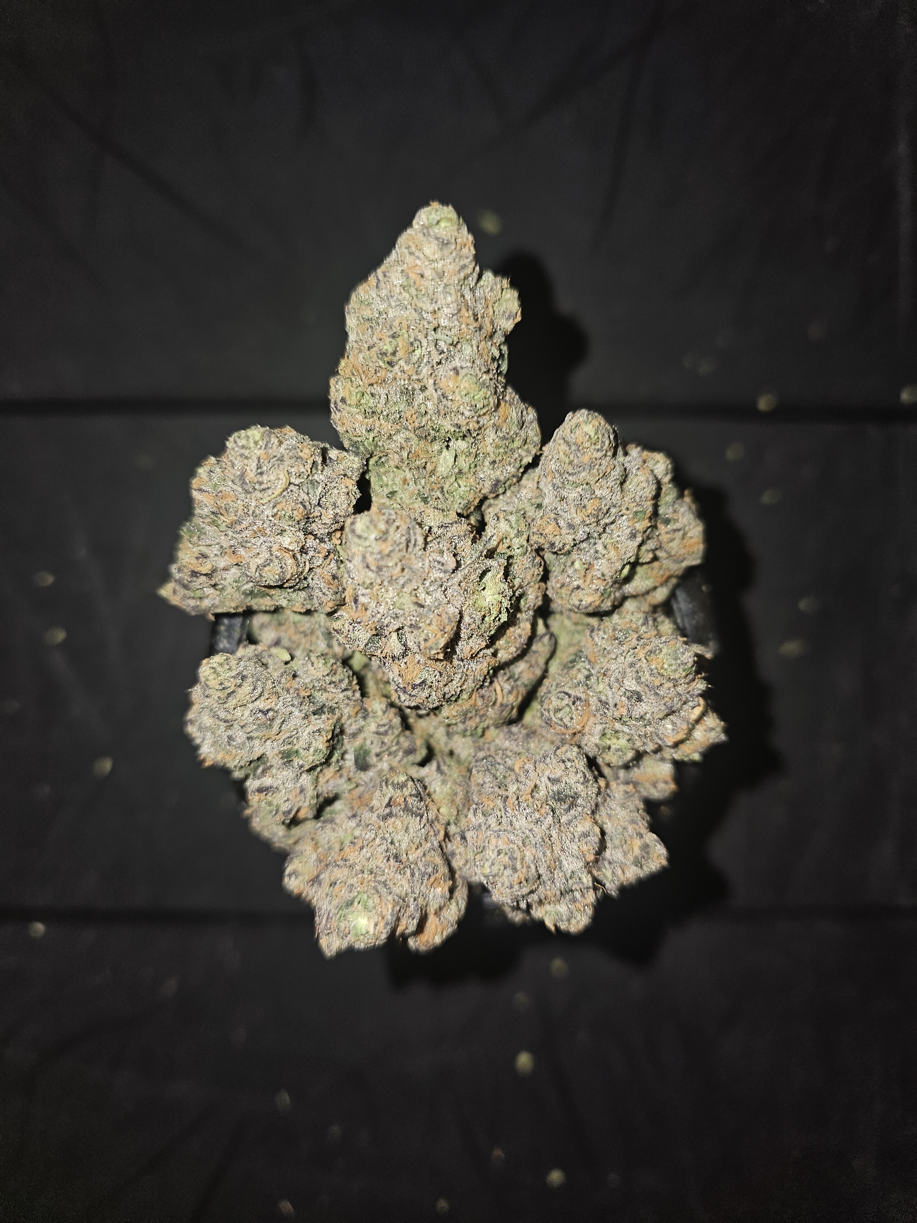 Death Star OG is a super potent indica dominant hybrid (80% indica/20% sativa) strain created through crossing the powerful Sour Diesel X Sensi Star X OG Kush strains. With parents like these, you know you're in for one heavy-hitting classic high that runs rampant on your mind and body with classic effects. The Death Star OG high sneaks up on you, like a planet-sized space station, before launching into you with powerfully uplifting beams of euphoria. You'll feel blissfully happy, although pretty hazy, in this state, unaware of any mental pains or racing thoughts. As your mind soars higher and higher into space, your body will start to be pulled back down with a relaxing body stone that permeates your entire being. This effect will leave you starving and sleepy, swinging back and forth between wanting food and wanting a nap. In combination with its powerful 28-34% average THC level, these heavy effects give Death Star OG an edge in treating conditions such as chronic pain, depression, nausea, and migraines or headaches. Death Star OG buds have small minty green nugs with dark amber undertones and matching crystal trichomes. As each bud is broken apart and smoked, rich flavors and smells of skunky earthy diesel and sweet kush will blend together for a flavor explosion that is out of this world.