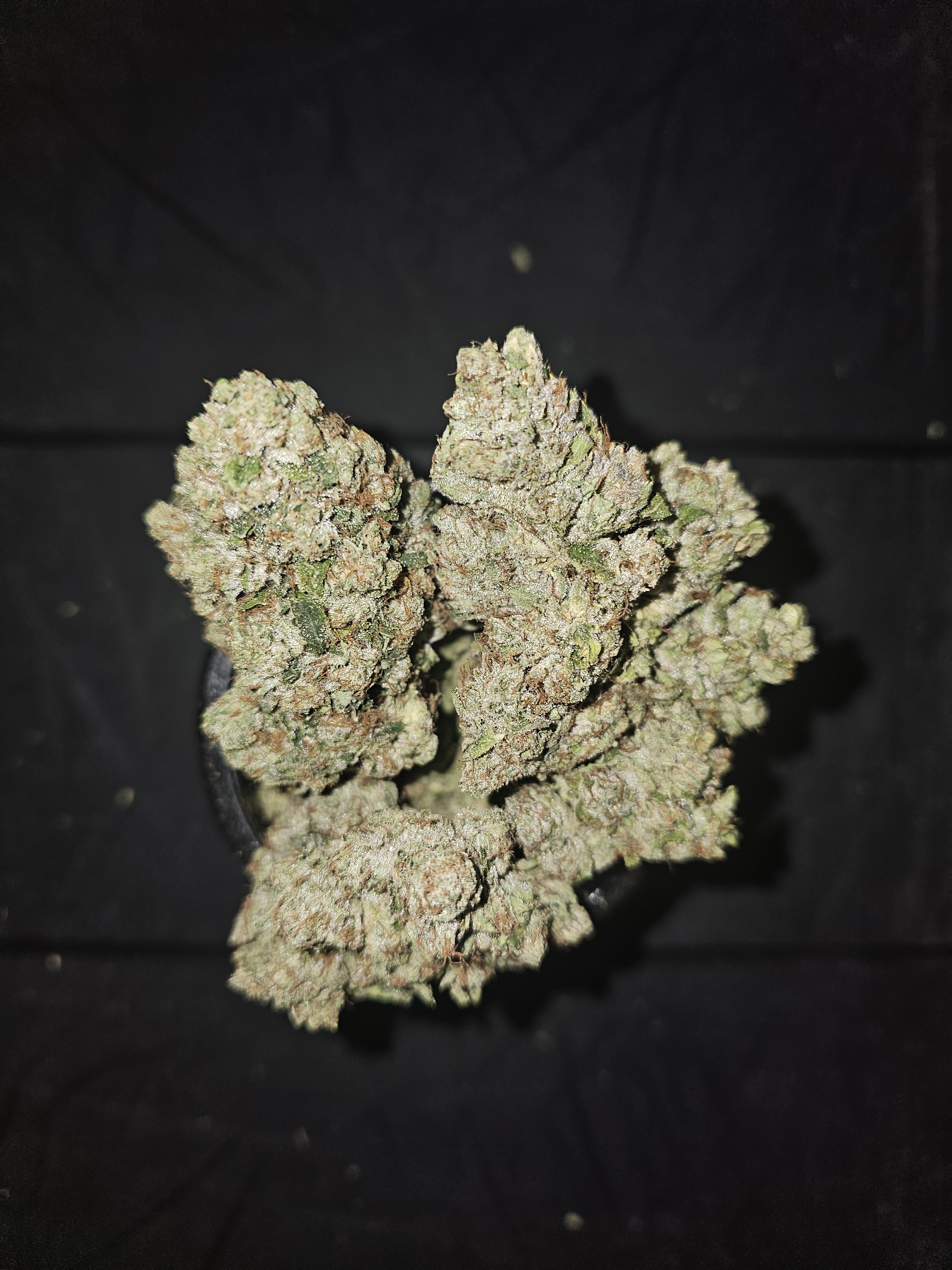 Jetsetter OG is an indica dominant hybrid strain (85% indica/15% sativa) created through crossing the classic Red Eye OG X White Walker OG strains. You'll be totally flying high and loving it after just one toke of the infamous Jetsetter OG. This bud packs a punch of stoney effects that creep up on you before suddenly taking hold and dropping you into an immovable state for hours and hours on end. The high starts in the head with a subtle lift that fills you with a sense of hazy happy euphoria. As your mind soars higher and higher, a tingly body high will wash over you, lulling you into a state of pure calm and ease. Quickly this turns stoney, making you completely couch-locked and sedated with no hope of moving any time soon. Thanks to these effects and its high 30-33% average THC level, Jetsetter OG is often chosen to treat those suffering from conditions such as chronic stress or anxiety, insomnia, chronic pain, muscle spasms or cramps, and PMS. This bud has a sour diesel flavor with a sharp lemony earth exhale. The aroma is of fresh herbs and pungent earth with a sour lemon diesel overtone. Jetsetter OG buds have piecey fluffy popcorn-shaped minty green nugs with bright orange hairs and a coating of frosty tiny white crystal trichomes.