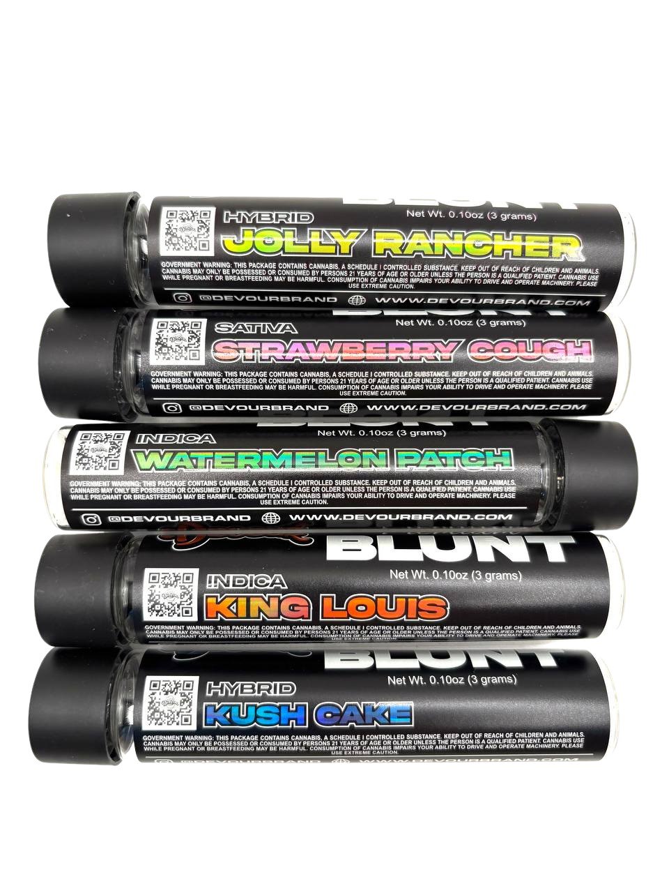 a premium collection of five infused mini blunts meticulously crafted for those seeking a profound and flavorful smoking experience. Each 0.7g joint is a harmonious blend of top-tier flower, solventless hash, and liquid diamonds, all encrusted in diamonds to amplify potency.