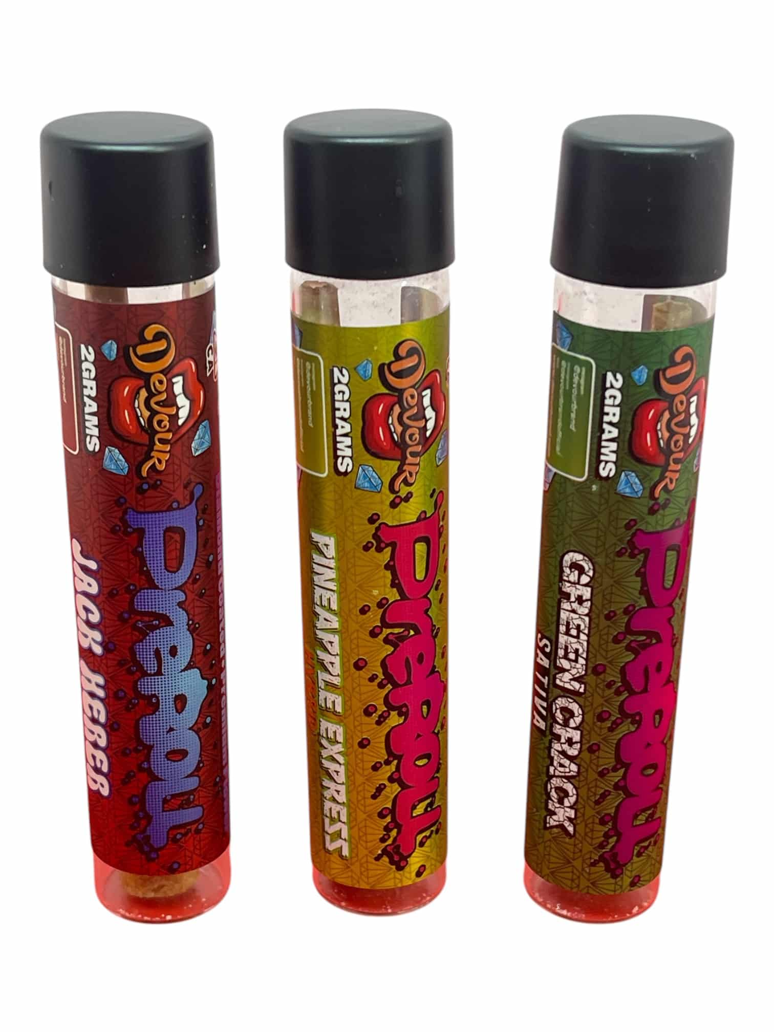 The Devour Powdered Donut Holes pre-roll is a 2-gram masterpiece that seamlessly blends top-shelf cannabis flower with a core of live rosin, all encased in a sparkling layer of THCA diamonds. This devour 2g pre roll fusion results in a product that not only offers a potent high but also delivers rich, complex flavors that cater to discerning cannabis enthusiasts.