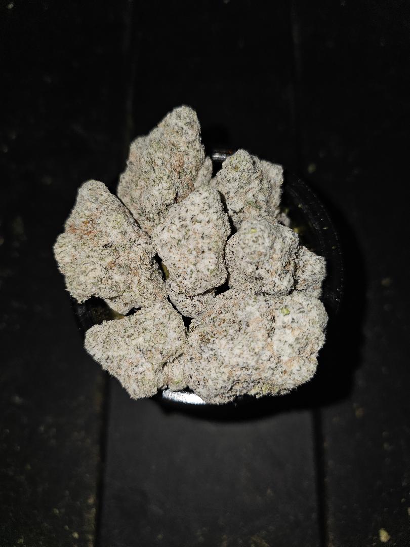 Ice Cream Cake is a rare indica dominant hybrid strain (75% indica/25% sativa) created through a cross of the Gelato 33 X Wedding Cake strains. With this bud, the name says it all in the flavor department. Ice Cream Cake packs a super delicious cheesy creamy flavor with a sweet nuttiness that lingers long after you finish your final toke. The aroma is of the same nature, with a light pungent effect to it that's released as the nugs are burned. The Ice Cream Cake high is just as beautiful as the flavor, with lifted and relaxing effects that will have you kicking back in no time flat. The high starts with a rush of cerebral effects that lift your mind into a state of pure happiness and ease, pushing out any negative or racing thoughts immediately. Soon after, a relaxing body high will start to creep into your physical form, leaving you falling deeper and deeper into a couch-locked state of sedation before you eventually begin to drift away. With these calming effects and its high 25-30% average THC level, Ice Cream Cake is said to be perfect for treating those suffering from depression, chronic pain, insomnia, and nausea or appetite loss. This bud has small dense grape-shaped forest green nugs with thick orange hairs and frosty white crystal trichomes.